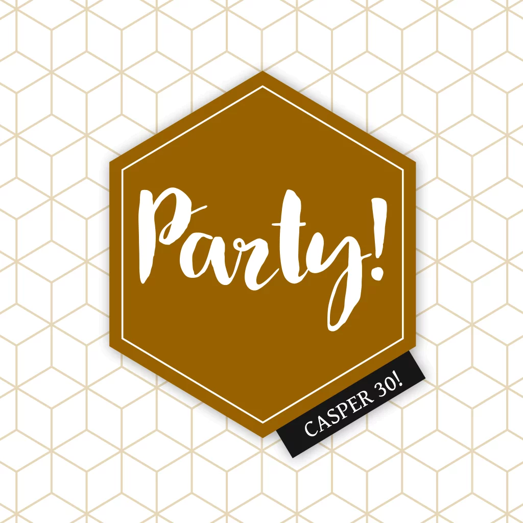 Moderne verjaardagskaart met een achtergrondpatroon van kubussen en een geometrisch tekstvlak. Leuk voor een man! Kleuren en lettertypes zijn eventueel aan te passen in de online editor.