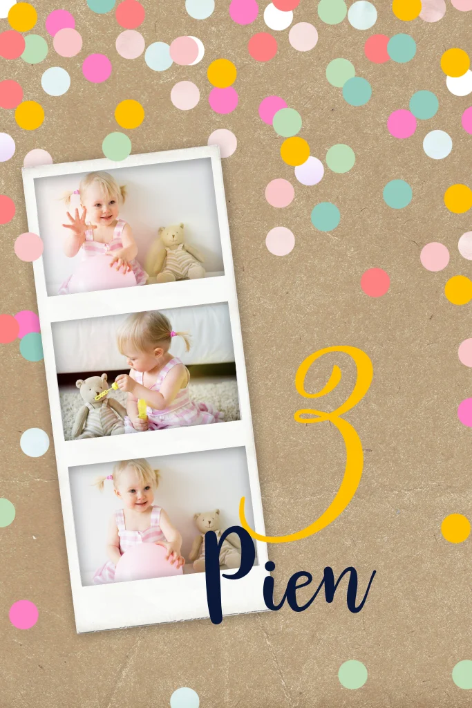 Uitnodiging voor kinderverjaardag met kraftlook en kleurrijke confetti
