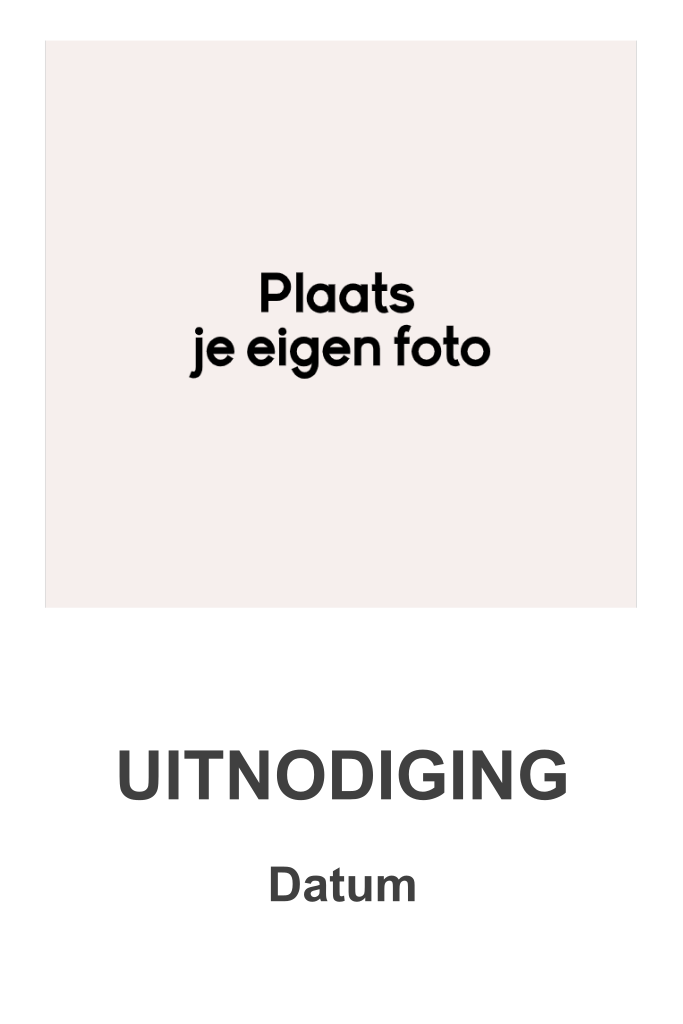 Wil je een eigen uitnodiging met foto maken? Dat kan! Wij hebben een kaart voor je gemaakt waarbij je alleen nog de foto hoeft te uploaden en de tekst moet aanpassen. Kies in onze online editor een mooi lettertype en je uitnodiging is klaar voor verzending.