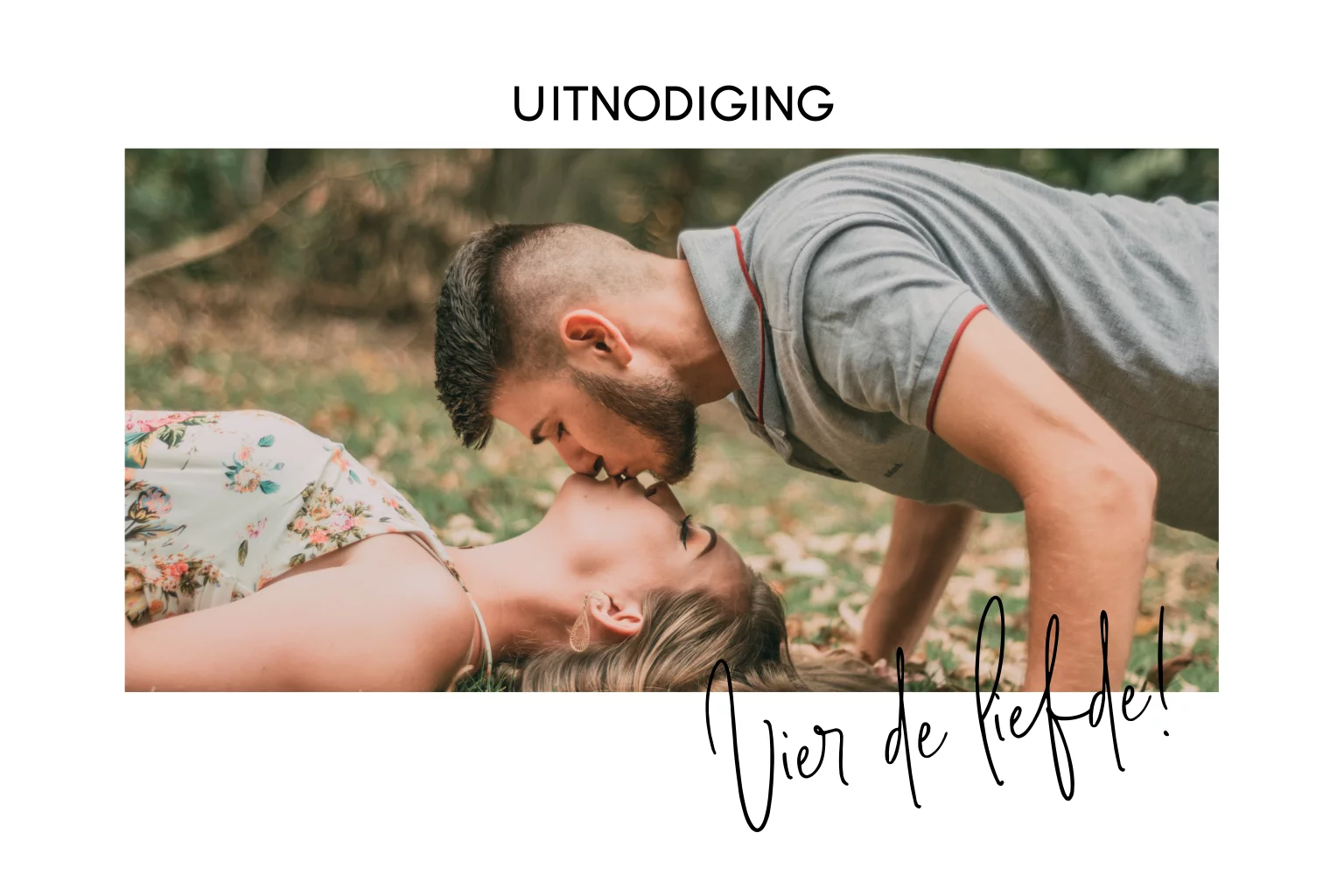 Een moderne uitnodiging met ruimte voor een mooie grote foto op de voorkant. De tekst staat in stijlvolle lettertypes. Maak de kaart naar persoonlijke wens in de online editor.