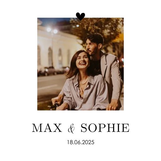 Een keramiek tegeltje als aandenken aan jullie trouwdag: deze past perfect bij de trouwkaart in originele vorm met foto en kraftlook. Pas de tekst naar wens aan met behulp van de ontwerp-tool.