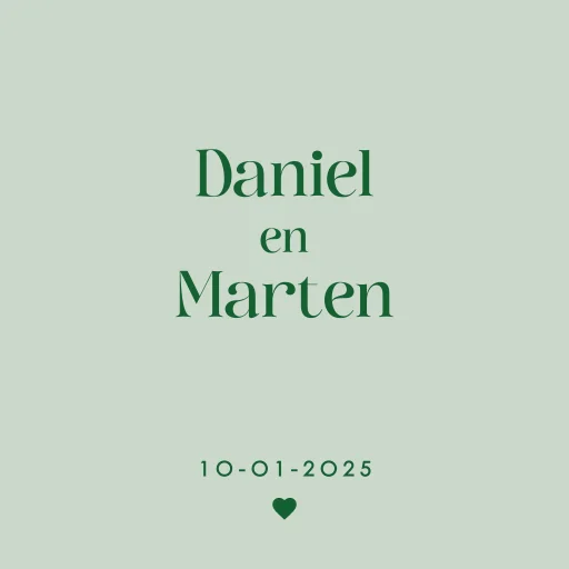 Jullie trouwkaart in de vorm van een keramiek tegel, leuk aandenken! Deze tegel hoort bij de trouwkaart met ribbels en groene hoogglans.